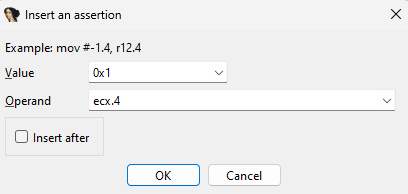 This means that the rest of decompilation will be handled without it. This feature is handy for deleting junk code. The user can also add new instructions by right clicking and selecting “Insert assertion”: