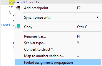 Another new feature is “Forbid assignment propagation”. It makes the output more readable. For example, we have a repeated expression here: