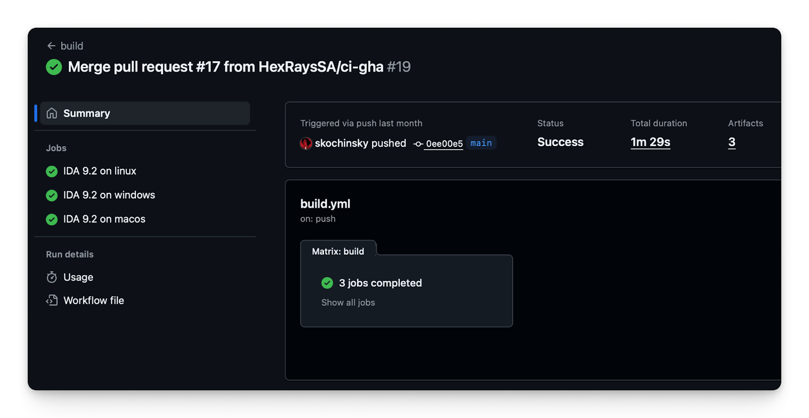 If you develop native plugins in C or C++, you know the pain of building and distributing across versions and platforms. With HCLI managing the download and installation and CI/CD providers like GitHub Actions offering a matrix of build environments ({Windows, Linux, and macOS} x {x86 and aarch64}), we think it becomes a lot easier to build and share native IDA plugins.