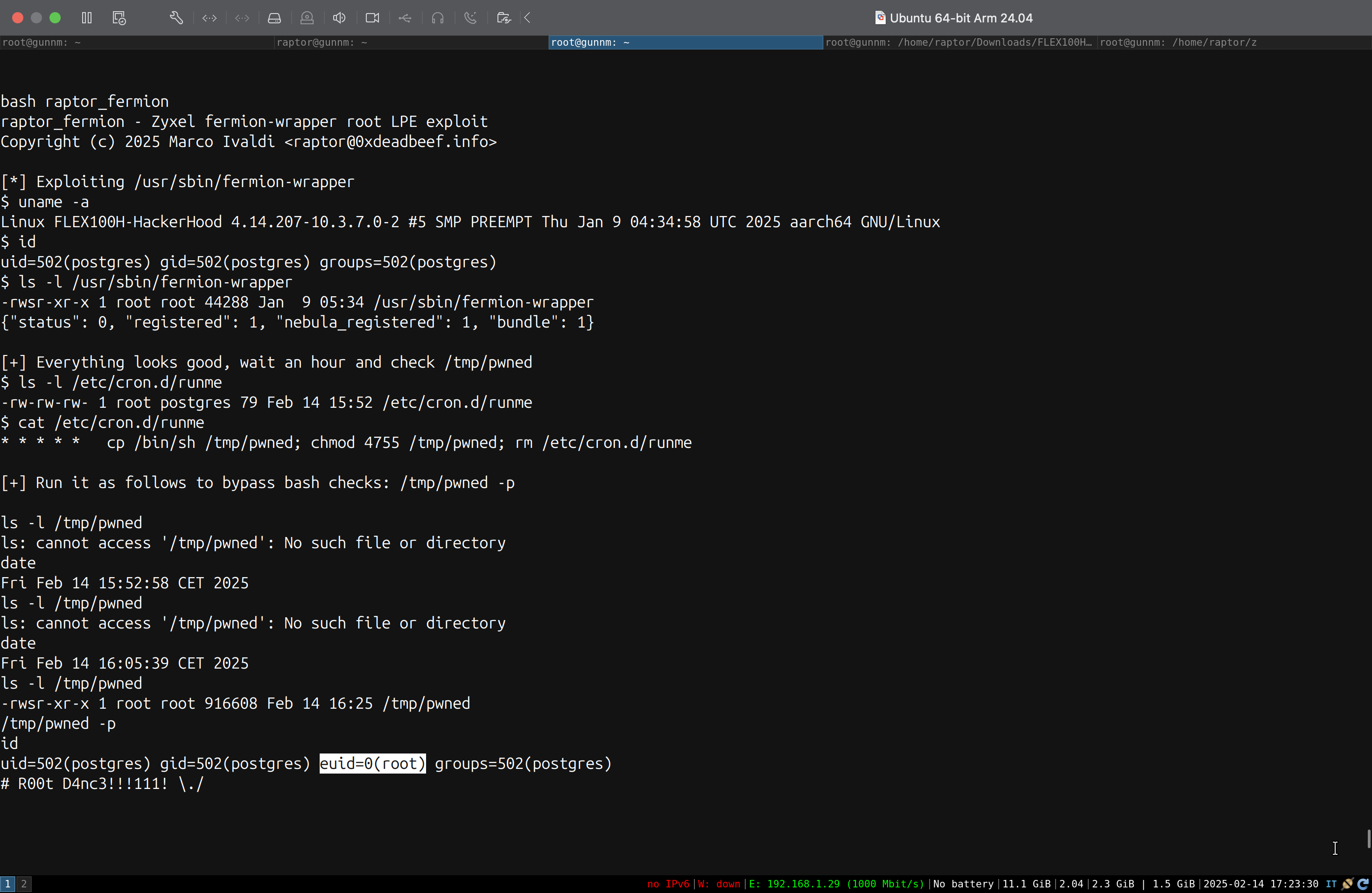 Unsurprisingly, the vulnerability lies at the highlighted line marked with Vuln 🙄. The binary running with elevated privileges can be tricked into following a symbolic link placed in /tmp/register_status by a local low-privileged user. This can be exploited to overwrite arbitrary files or escalate privileges to root.