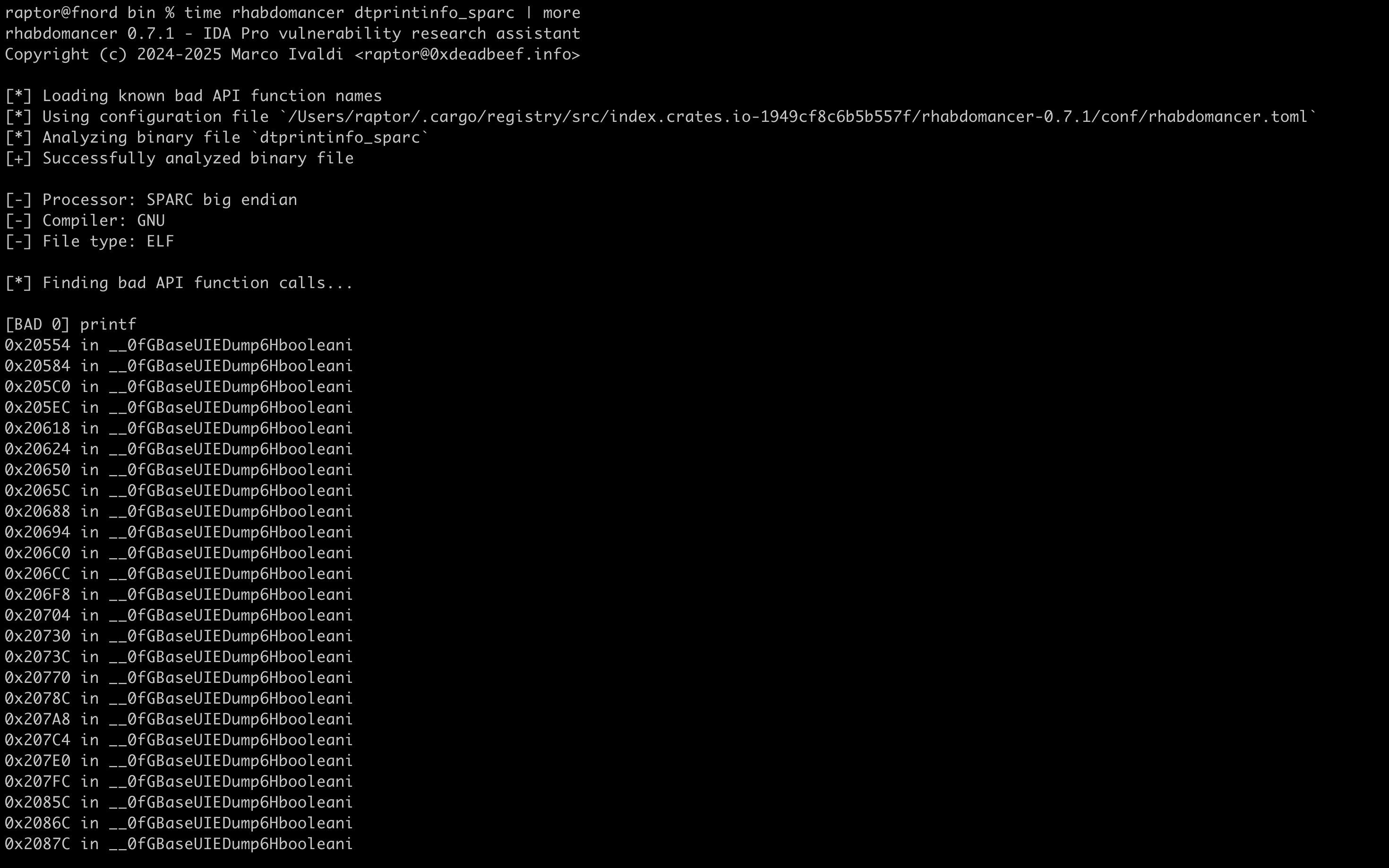 Rhabdomancer is the Rust port of one of my original Ghidra scripts, previously described in the article Automating binary vulnerability discovery with Ghidra and Semgrep.