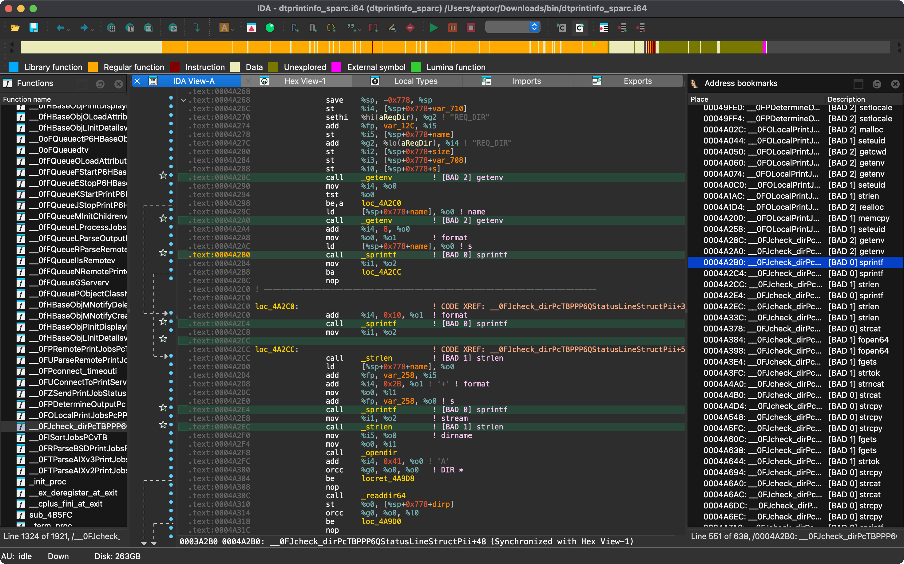 Bad API function call locations are bookmarked in the IDB. Enjoy your results conveniently collected into an IDA Pro window: